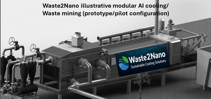 AI server racks generate intense heat (20–50+ MW per facility). Rather than venting this thermal energy into the atmosphere, Waste2Nano captures it to power the production of Microcellulose (MC) and Nanocellulose (NC). Waste Mining.